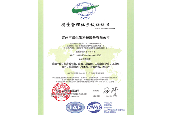 蘇州豐倍生物科技股份有限公司是一家天然油脂資源綜合利用領域的高新技術企業,主要以天然油脂生產資源化產品。基于長期的研發投入和產業實踐,公司在天然油脂資源綜合利用的深度及廣度上不斷拓展,形成了“工業油脂—生物燃料(生物柴油)—生物基材料”的油脂資源再生產業鏈。此外,公司還依托自身油脂綜合利用核心技術和渠道優勢為客戶提供油脂化學品。